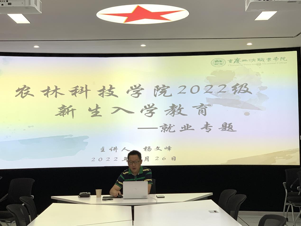 2022年9月26日上午9点整,农林科技学院开展了2022届新生入学教育就业专题教育,特邀到重庆三峡职业学院就业指导中心杨文峰老师进行线上主讲,本次就业专题教育主题为做好职业规划、追梦而行。