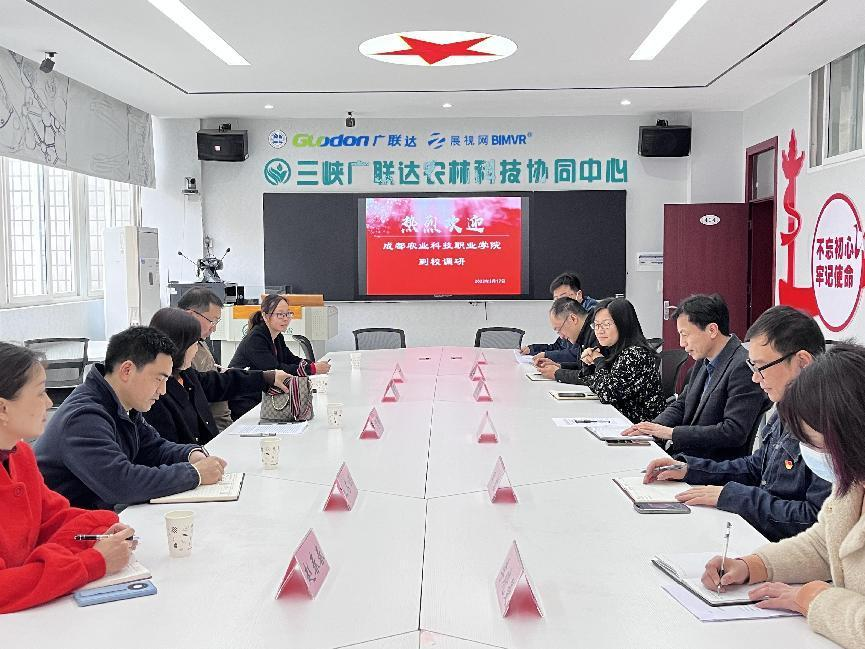 2023年3月17日上午,成都农业科技职业学院党总支副书记张智晖一行到我二级学院开展调研交流。农林科技学院党总支书记、院长丁廷发主城会议,曹剑副院长全程陪同。