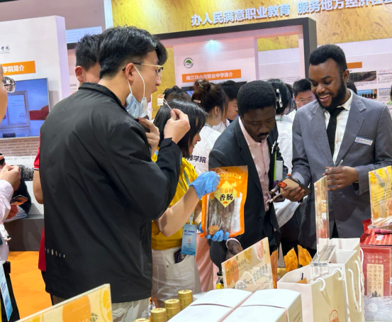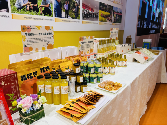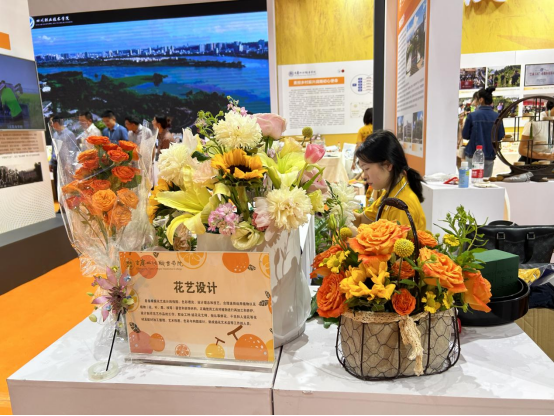 我院展出的作品包括:自主研发的古红桔深加工系列产品(果酒、果汁、果干、护肤品等)、万春腊肉、花艺作品、茶艺等,吸引了全国各地参观展会的领导、老师、同学驻足观赏,获得高度赞扬。