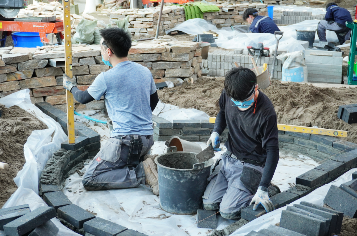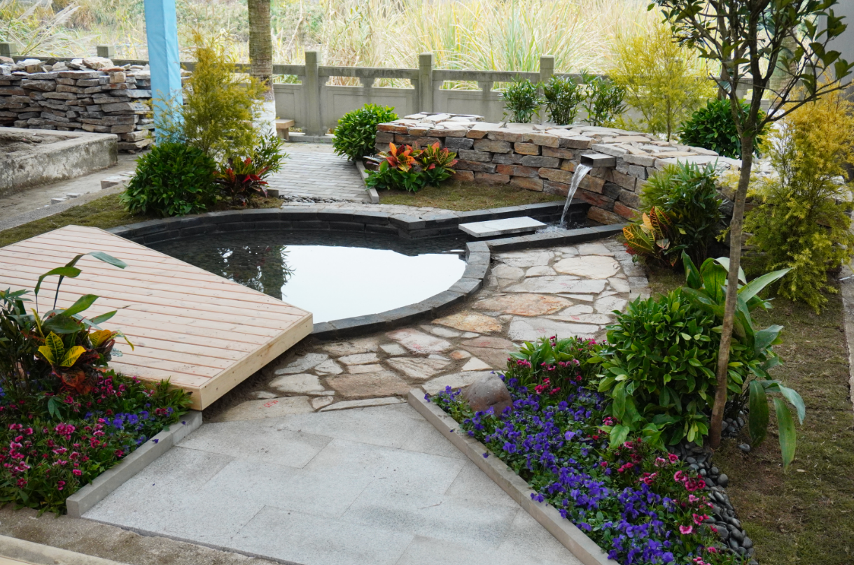 园林景观设计与施工项目为团队项目,设计选手在 4 小时内,根据比赛指定的环境、材料等,完成一套 5m×6m 的小花园景观施工图设计方案,包括彩色平面图、鸟瞰效果图各一张,完整施工图一套。施工选手在12小时内施工,完成木作、砌筑、铺装、水景营造、植物造景等工作任务,各工作任务有机结合在一起构成一件园林景观作品。