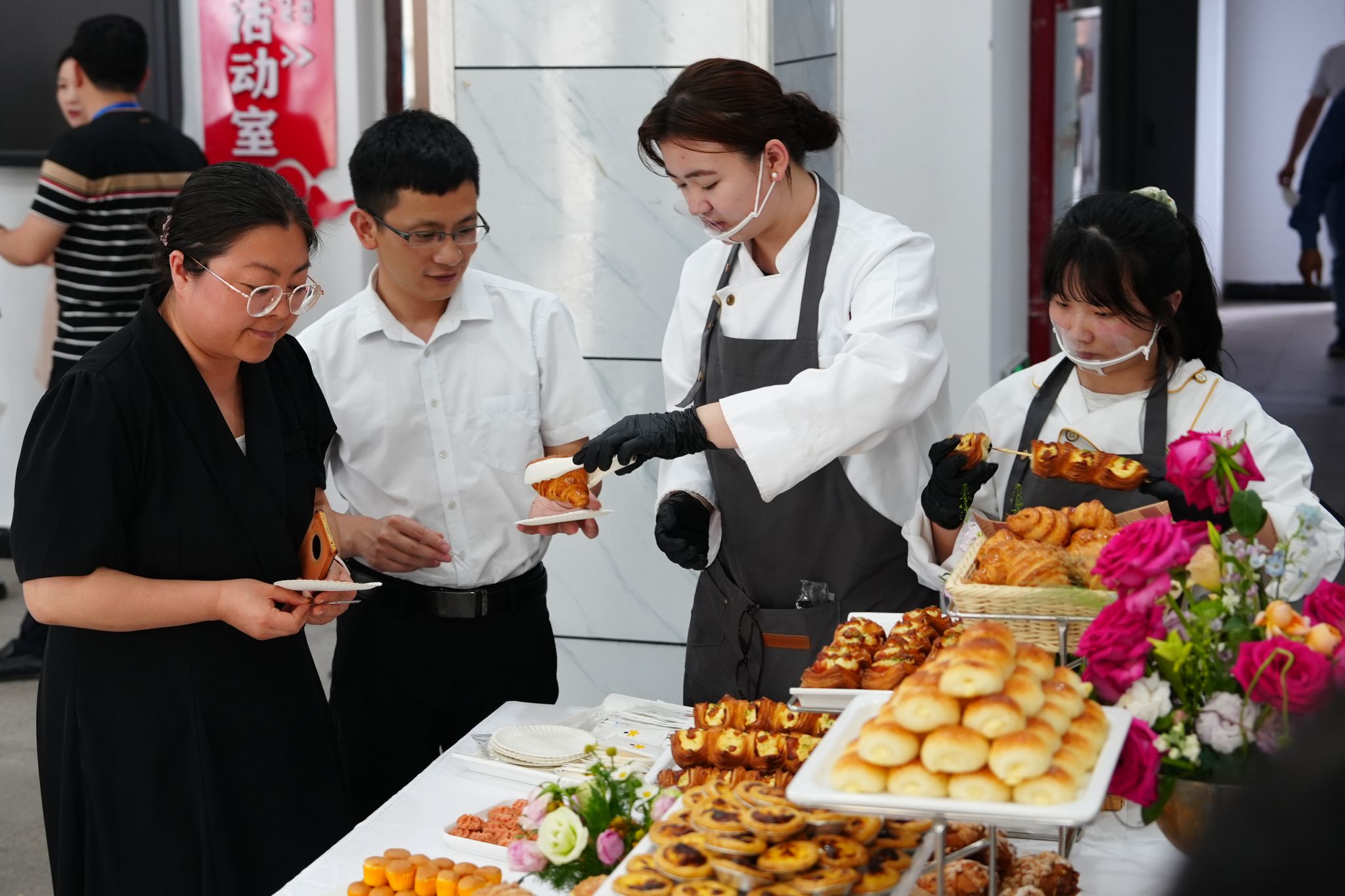 在与现场来宾互动时,学生代表们热情分享烘焙学习经历。一位学生代表激动地说:“为了做出最完美的作品,我们反复尝试不同的原料搭配和制作工艺,每一次失败都是向成功迈进的一步。”从原料的精挑细选,到制作工艺的反复钻研;从创意灵感的火花迸发,到成品呈现的完美蜕变,每一个细节都饱含着他们的心血与汗水。他们的分享,既交流了知识和技能,也体现了他们对烘焙梦想的坚持。