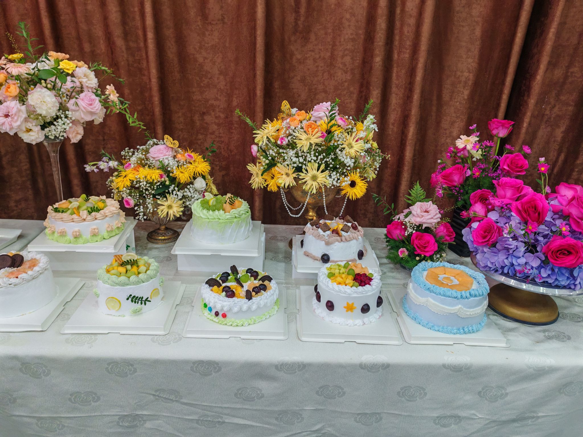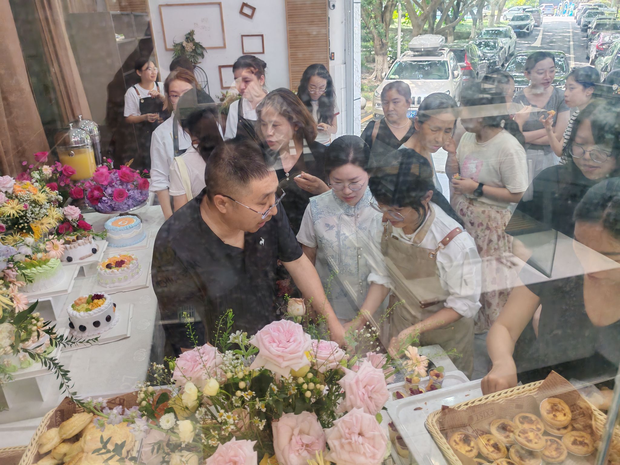 当老师们步入活动场地,瞬间被眼前精致的甜点与绚丽的花艺所吸引。大家围在一起,品尝着同学们亲手制作的美味甜点,欣赏着充满艺术气息的插花作品,相互交流着感受与心得,现场氛围轻松愉悦。