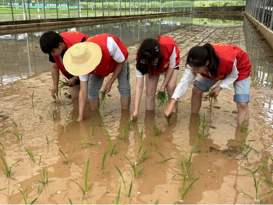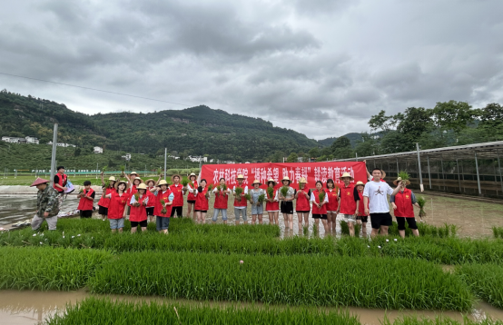 “手把青秧插满天,低头便见水中天”。为了让同学们了解正确的种植方法以及注意安全事项,三峡农科院刘军化老师亲自示范了插秧的步骤与技巧。掌握各项要领后,同学们迫不及待要一试身手,他们踏入农田,弯腰踩在水田里,左手攥秧把,右手插秧苗,在与大自然的互动中感受农耕文化,体会劳动的艰辛与喜悦,也懂得了“知农事,学农耕,惜农食”。经过大家的努力,一片绿油油的秧苗迎风招展,劳动的喜悦涌上了同学们的心头。此时,“锄禾日当午”的诗句不再是空洞的诗句,而是真实的劳动体验。挥洒了汗水的同时,大家也播种了希望。