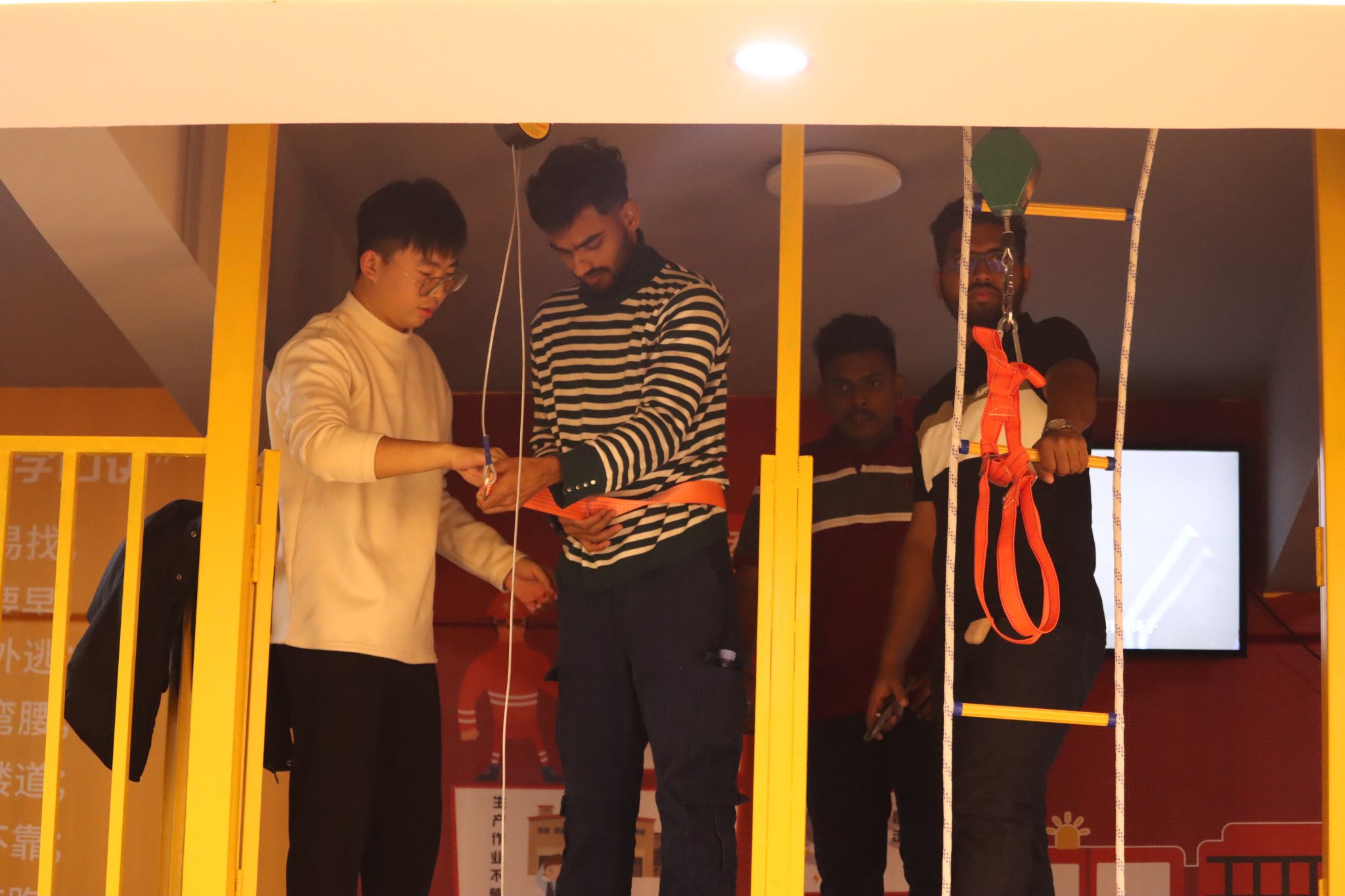 活动中,留学生们步入安防科技体验馆。他们戴上VR设备,在HTC行走平台和VR动感平台上,沉浸式体验了电梯失控坠落、模拟触电、汽车碰撞等突发险情,大家在“玩”与“练”中,深刻感受到了安防科技的魅力。