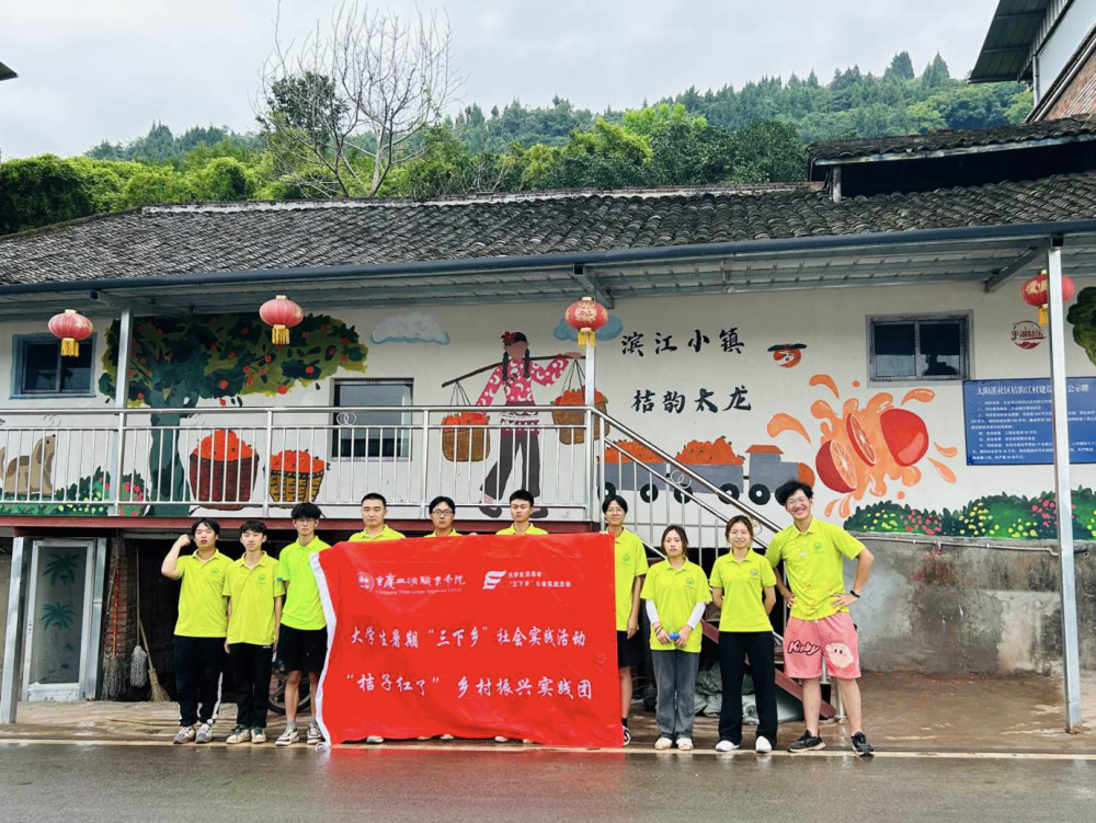 与此同时,为推动乡村容貌整体提升,实践队员们还开展了“桔子红了”文化墙绘活动。绘画中,大家创造性地将特色古红桔产业和当地风情相结合,进一步增强太龙镇古红桔品牌的认知度和传播力。