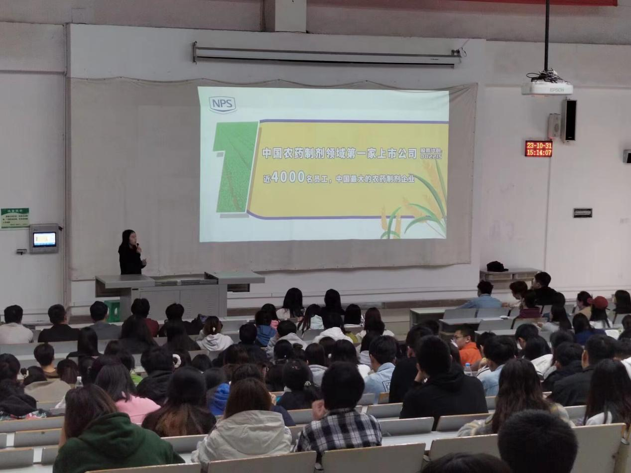 2023年10月31日,深圳诺普信作物科学股份有限公司一行到校召开2024届毕业生专场宣讲会,农林科技学院2024届全体毕业生到场参会。