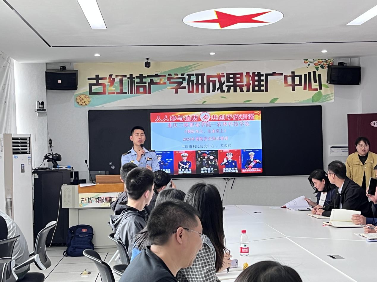 为了提高农林科技学院全体教师的消防安全意识,确保校园安全,今日我院特邀重庆市利民防火中心黎教官为全体教师进行了消防安全知识培训。