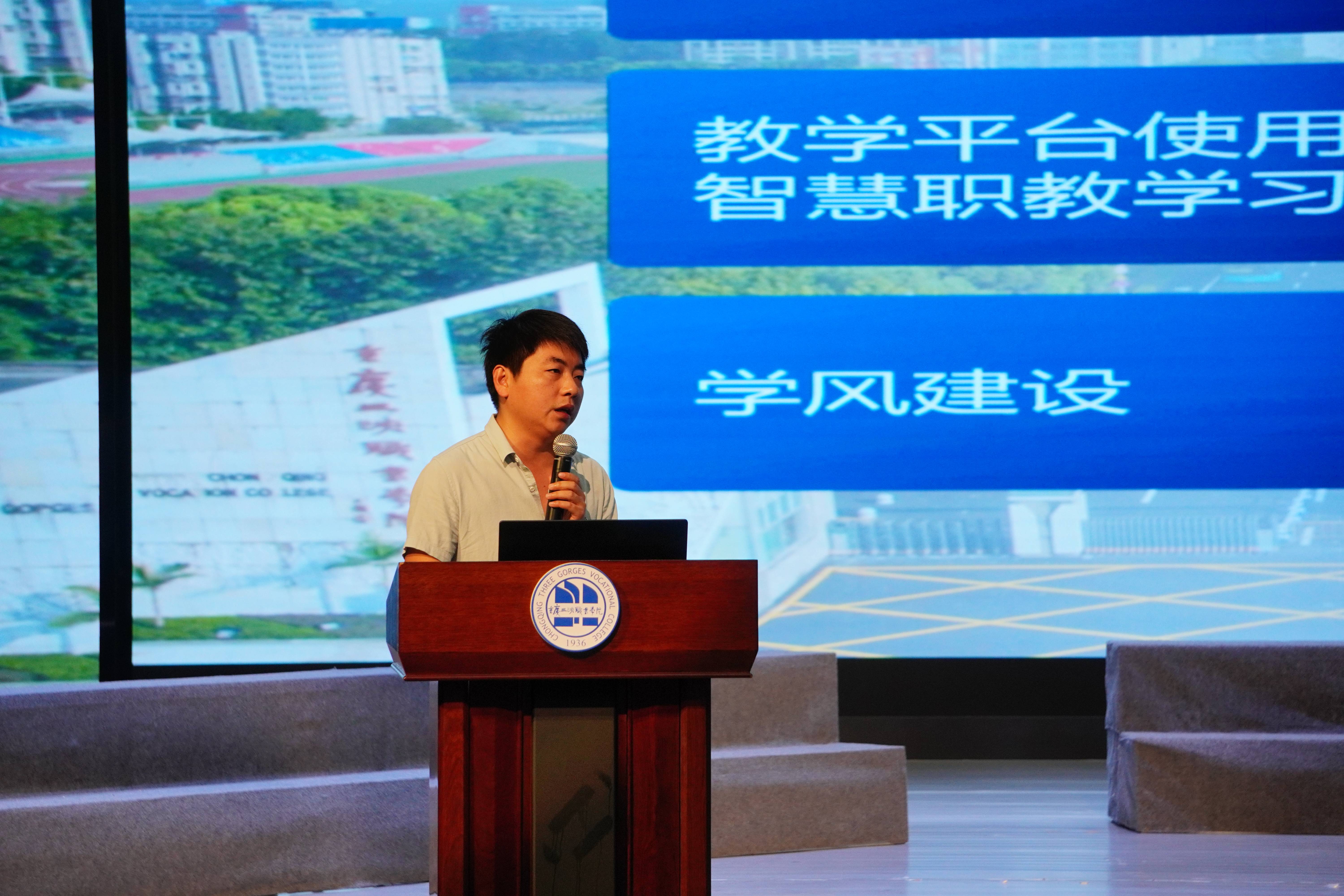 教务处王江副科长立足于教务系统使用、培养方案、学分与选课、考试和预警、学风建设等方面,向新生进行了详细的讲解。图书馆孙健馆长从资源利用、馆藏分布、读者服务、规章制度等方面对新生开展了入馆教育活动。