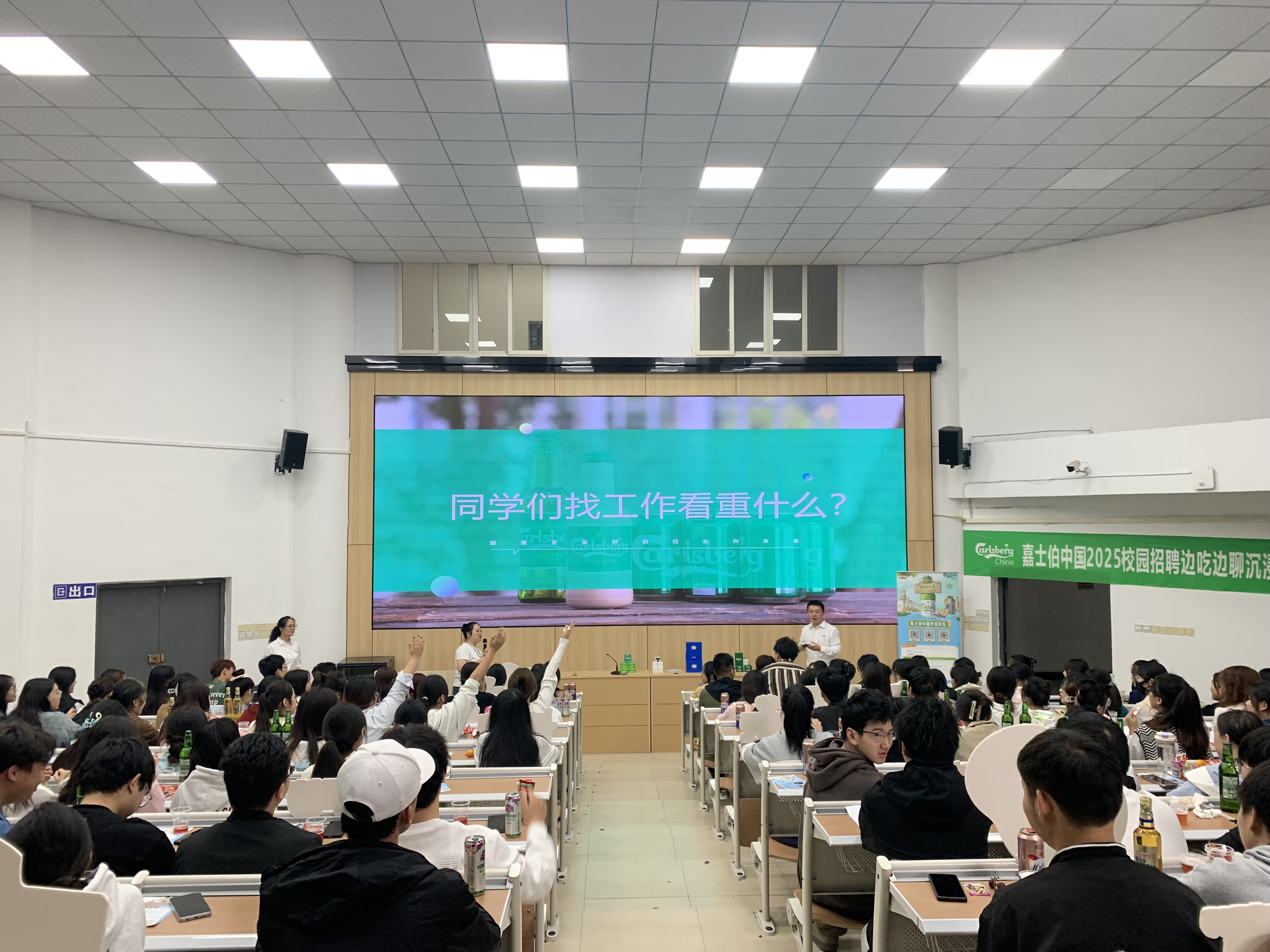 在本次宣讲会上,嘉士伯重庆啤酒有限公司提供了多个优质岗位,涉及销售专才、供应链专才等,涵盖食品智能加工、食品检测等多个专业。招聘团队详细介绍了各岗位的职责、任职要求以及福利待遇,包括六险一金、带薪年假、年度体检等等。宣讲会现场气氛热烈,同学们积极参与互动,提问环节更是反响强烈。此次宣讲会取得了圆满成功,不仅为农林科技学院的毕业生提供了多样化的就业选择,也为企业发掘和培育优秀人才提供了有力支持。宣讲会结束后,感兴趣的同学们还与招聘团队进行了深入交流,达成后续面试的意愿。
