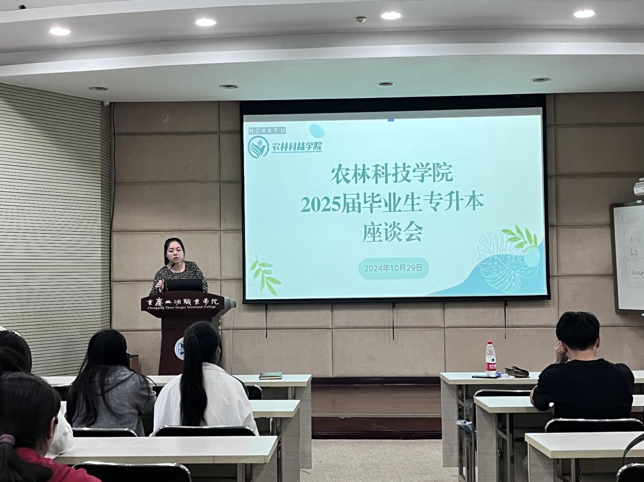 为帮助2025届毕业生更好地明确升学方向,农林科技学院于10月29日召开毕业生专升本座谈会。学工科赵燕科长、左倩老师、毕业班全体辅导员和2025届专升本意向学生参加了本次座谈会。