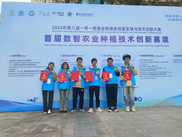 2024年11月25日,农林科技学院教师田洋、2023级园艺技术2班学生何佳佳(女)、彭小娟(女)、戴海军前往上海农林职业技术学院参加一带一路暨金砖国家技能发展与技术创新大赛数智农业种植技术创新全国总决赛。通过与126支参赛队伍的激烈角逐,我院凭借过硬的心理素质、扎实的专业知识、独到的创新思维、精湛的实操技能,获得了1个金奖、1个铜奖的好成绩。
