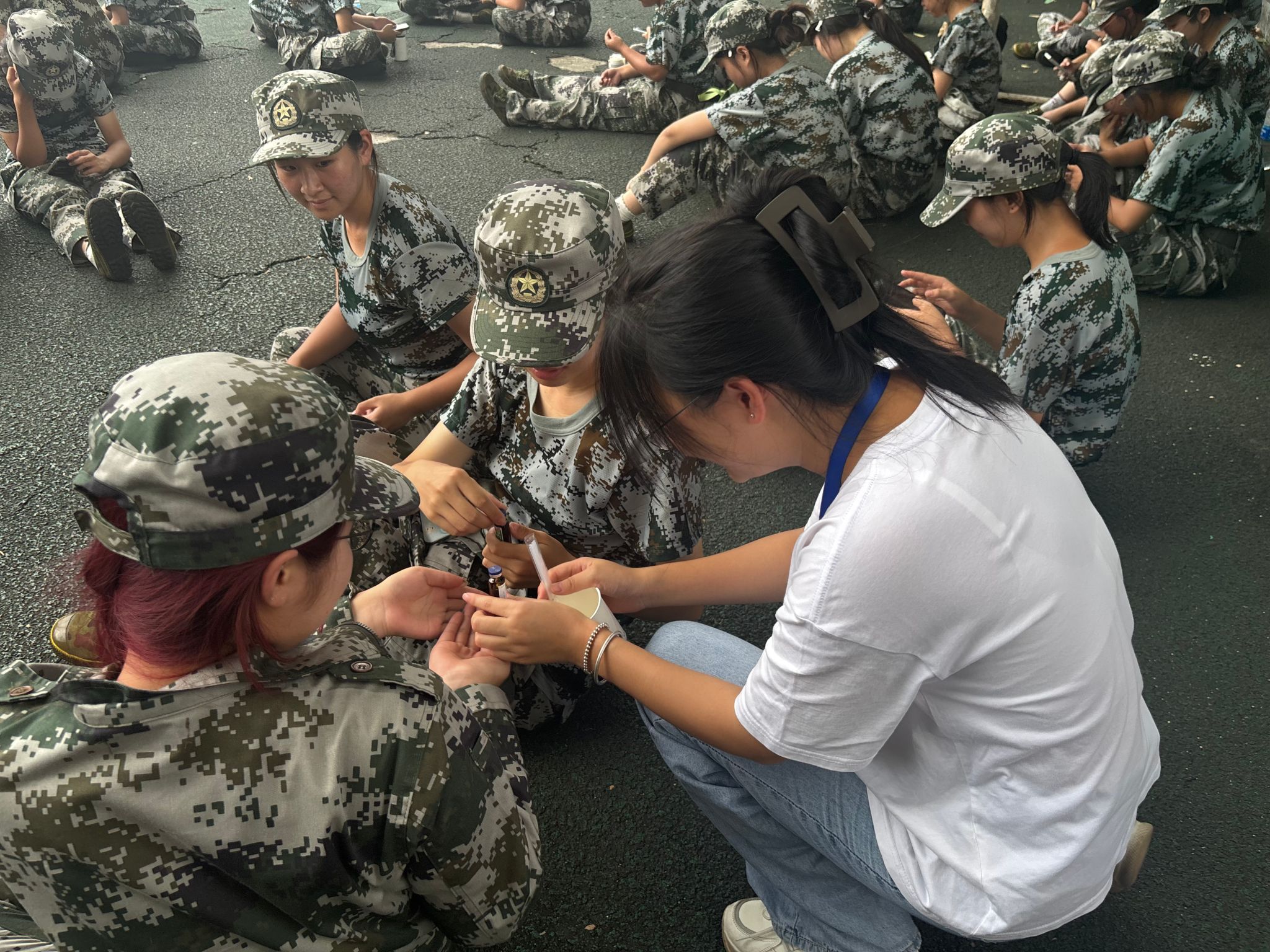 自军训启动以来,服务站在训练场周边设立24小时自助饮水点,并联动食品加工技术专业学生团队,每日制作酸梅汤、柠檬茶等解暑饮品;针对可能出现的中暑、擦伤等情况,服务站提前备足藿香正气液、清凉油、创可贴等防暑药品及急救物资。服务站志愿者轮班承担物资调配、饮水点补给、场地清洁等工作,以“快响应、优服务”的作风,在训练场外筑起一道“青春后勤线”。