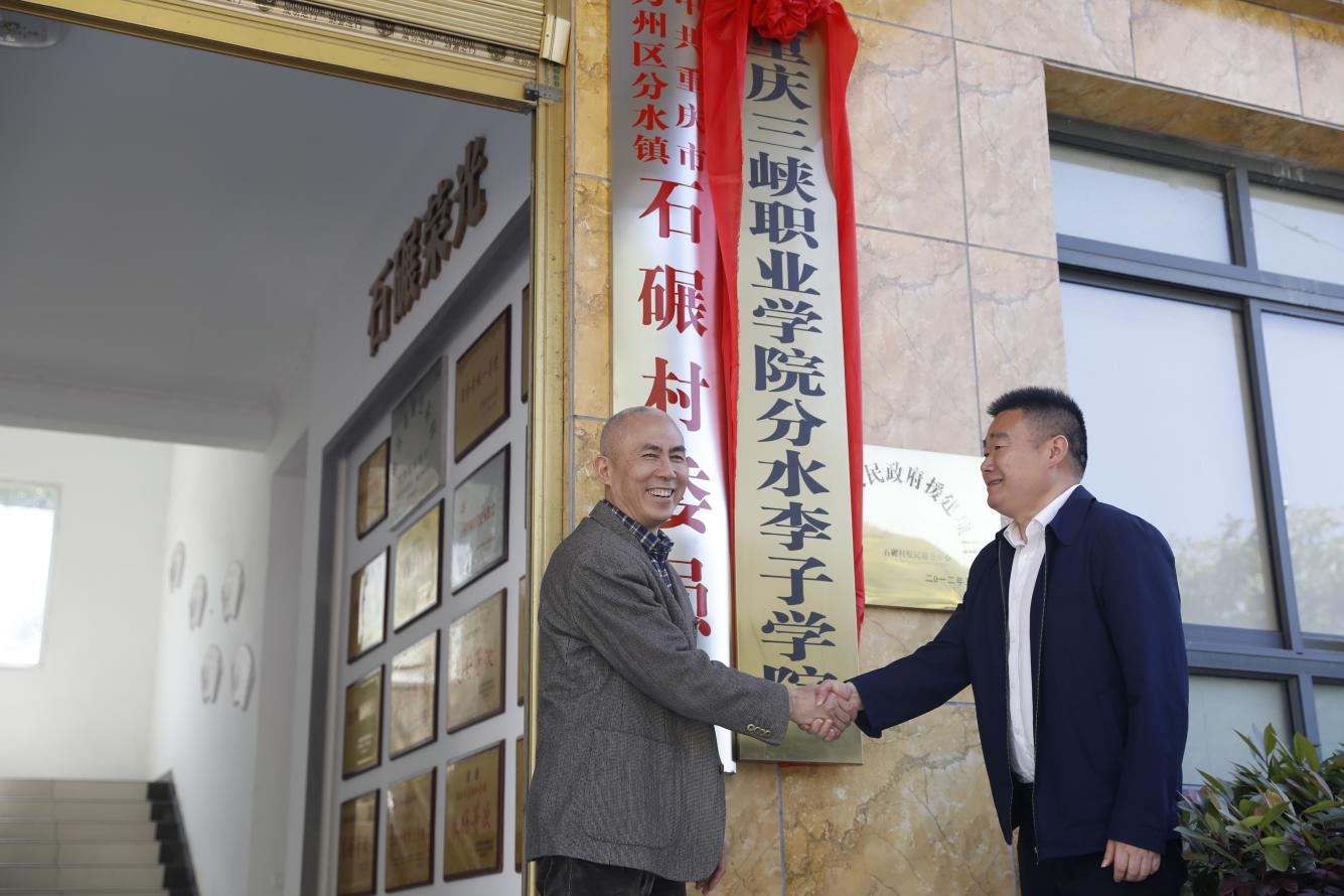 重庆三峡职业学院分水李子学院正式挂牌成立。赵福奎副院长和分水镇党委书记郭勇为李子学院揭牌。
