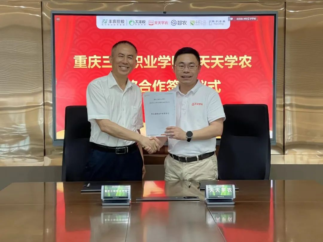 天天学农CEO赵广表示天天学农将积极参与合作,深化校企关系。赵广还提出,希望双方在促进学生就业、共建产业学院等方面可以进一步加深合作。会上,学院与天天学农正式签署了战略合作协议。双方将在课程共享共建、共建涉农专业、共建数智农业实训基地、现代学徒制、涉农培训认证、科研及产学等方面展开全面合作,共同推动农业职业教育的创新和发展。