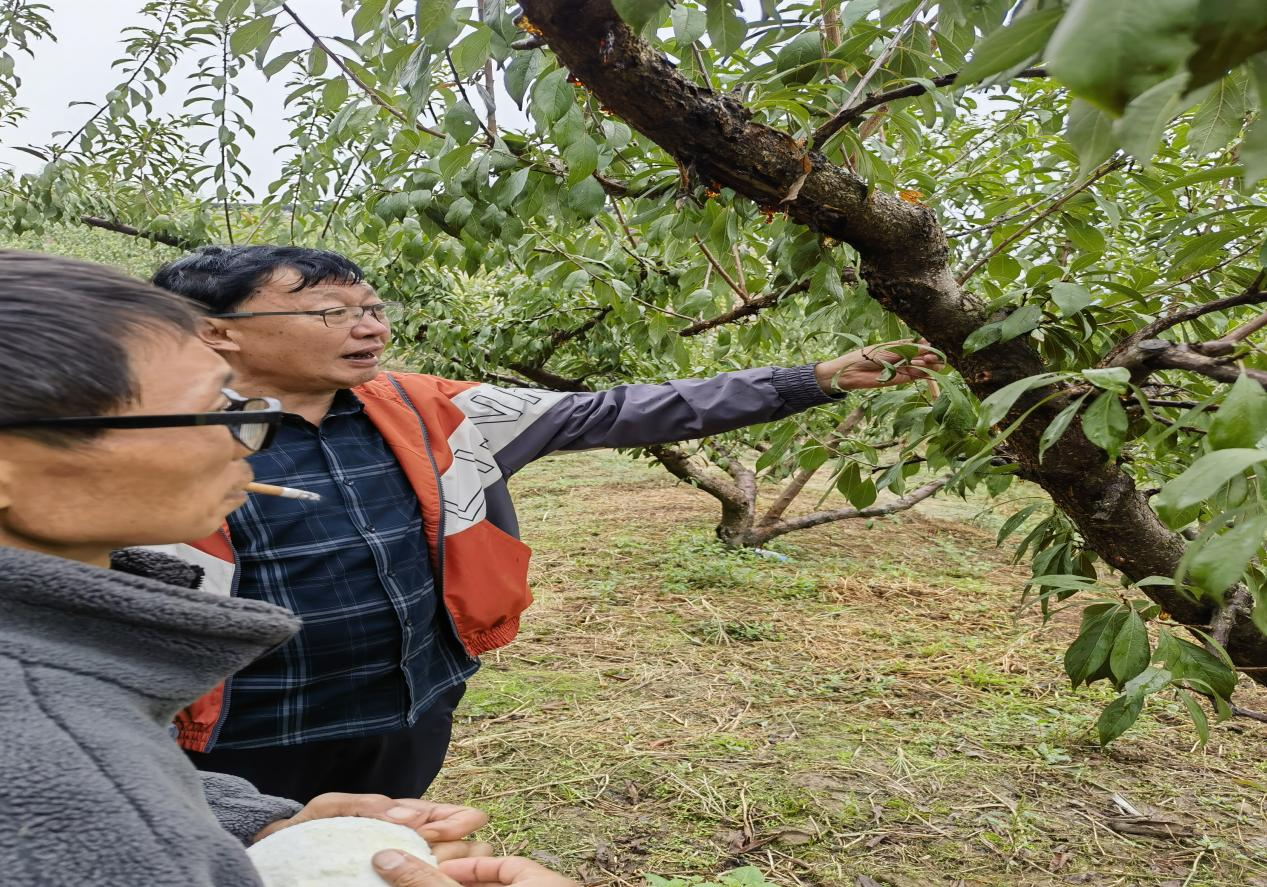 随后,农林科技学院的王强教授现场为村民王忠贵指导青脆李栽培管护,确保果树健康生长,最大化提升其综合经济效益。