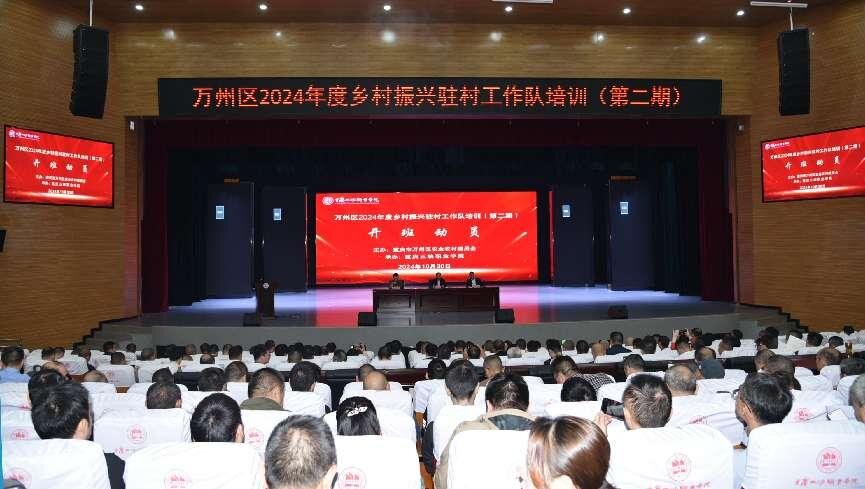 2024年10月30日上午,重庆市万州区2024年度乡村振兴驻村工作队培训(第二期)在重庆三峡职业学院学生活动中心隆重开班。为帮助驻村干部明确职责任务,提升履职尽责能力,来自重庆市万州区各街道、乡镇的200多名驻乡工作队联络员、驻村第一书记和工作队员参加了此次培训,本期培训围绕深入学习贯彻习近平总书记关于“三农”工作的重要论述、学习贯彻中央和市委关于“三农”工作的决策部署等课程内容,采取“专题讲座+分组讨论+经验分享”方式进行,另有6名驻村第一书记现场交流分享经验。