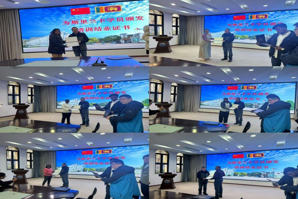 最后,学院党委委员、副校长袁德梽与斯里兰卡学员进行了座谈交流,并为斯里兰卡学员颁发了结业证书。