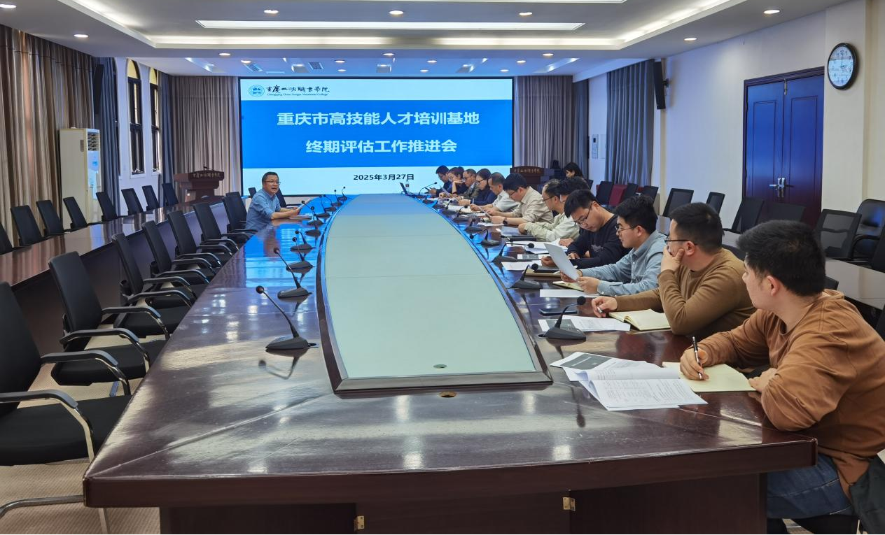 为扎实推进重庆市高技能人才培训基地建设,确保顺利通过终期评估,3月27日下午,培训学院在行政楼三楼会议室组织召开了重庆市高技能人才培训基地终期评估工作推进会。会议由学院党委委员、副院长袁德梽主持,学院高技能人才培训基地建设三个项目负责人、核心成员、计划财务处及基建后勤处负责人参加了此次会议。