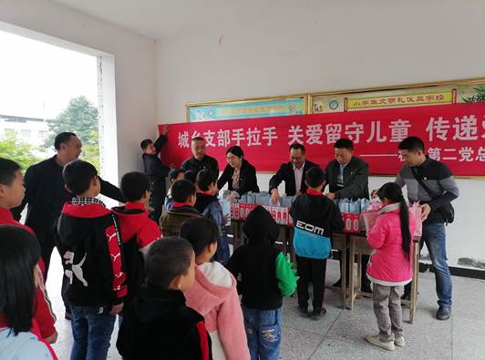 随后机关第二党总支第三党支部来到三元乡小学,为25个留守儿童送去学习文具、保温杯,让他们感受到阳光与温暖,孩子们纯真的笑容和真挚的感谢也触动着支部党员们,支部书记曾理说到:“孩子们,你们要好好学习,知识就是力量,长大后你们要为祖国建设贡献出自己的力量。”