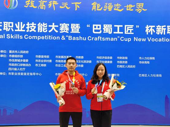 在2021年10月29日-30日举办的第七届中国·重庆职业技能大赛暨“巴蜀工匠”杯新职业技能大赛上,我院朱宇雪老师和陈虹屹老师斩获两项大奖。