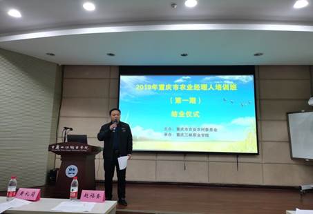 经过三个阶段的紧张学习,由重庆市农业农村委员会主办、我校承办的2019年重庆市农业经理人培训一期班于11月8日顺利结业。11月8日上午,结业仪式在我校博雅楼207教室举行。学校党委委员、副校长赵福奎,继续教育学院院长黄礼岗,经济管理学院党总支副书记陶毅、智能制造学院副院长徐明灿出席了结业仪式。仪式由黄礼岗主持。