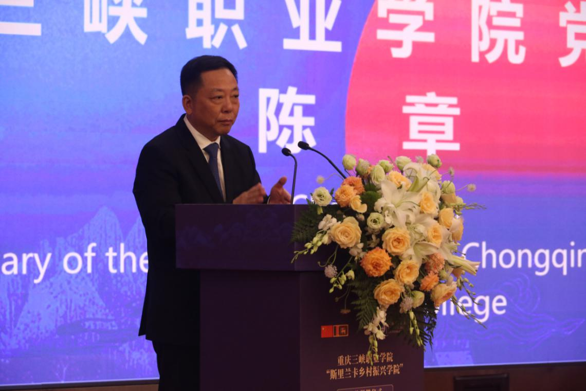 中国教育国际交流协会副秘书长余有根,重庆市教育委员会副主任金玲出席致辞。他们肯定了重庆三峡职业学院在乡村振兴工作中的突出成绩,希望重庆三峡职业学院以此次为契机,进一步加强办学综合能力建设,将中斯项目驶向深入,为斯里兰卡的发展贡献具有重庆特色的中国智慧。