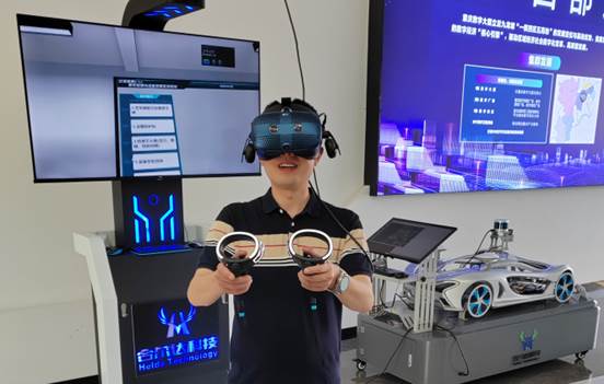 随后,夏平书记一行来到合尔达科技有限公司,考察了公司的数字大楼和研发中心,体验了新能源汽车VR虚拟拆装软件及设备,听取了公司高层对未来市场趋势和技术创新的见解。谢院长表示,学院将在职业技能大赛、创新创业大赛、新校区实训基地建设等多方面探索与合尔达的合作渠道,共同开展专业建设。