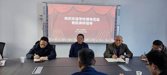 2023年2月27日,学校党委书记陈章,党委委员、副校长赵福奎以及相关部门负责人一行来到汽车工程学院调研指导工作。汽车工程学院党总支书记夏平、党总支副书记沈枫、副院长谢焕以及各教研室主任和部分教师参加了指导工作会。