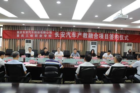 2021年9月24日下午14:00,重庆三峡职业学院行政楼303举行了“长安汽车产教融合项目”签约仪式。重庆三峡职业学院党委书记陈章、院长李炯光、党委副书记张智、重庆长安汽车股份有限公司人力资源部副总经理王武生、长安汽车国家级技能大师刘源、重庆长安汽车股份有限公司人力资源部培训处经理耿溢等领导参加了签约仪式。