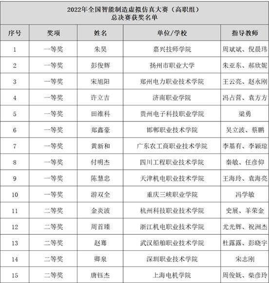 我院学子荣获2022年全国智能制造虚拟仿真大赛(高职组)一等奖