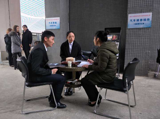 第三个环节由扮演销售顾问的同学,主要完成接待需求分析、建议试乘试驾等环节。在这个过程中是非常考验扮演销售顾问的同学的,首先要出色的完成对顾客各种需求进行解说,并通过观察顾客的动作和话语了解顾客的需要,解决顾客对汽车提出的疑问。这就需要销售人员对于汽车知识有着充分掌握。
