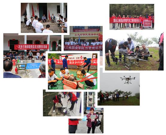 加强驻村帮扶脱贫,强化党建红色引领,总支与大林村党总支开展结对子,助力脱贫攻坚。开展党员进社区,助力美丽中国建设。开展三下乡活动,助力乡村治理建设。开展专业技术服务农村,助力农村经济发展。此外,依托两大专家工作室,承办了2019年重庆市植保无人飞机操作技能竞赛,选拔出2队选手参加农业农村部主办的2019年全国植保无人飞机操作技能竞赛,获得2个二等奖。完成了中级农机维修工培训班和无人机操作技能培训班的组织和培训工作。