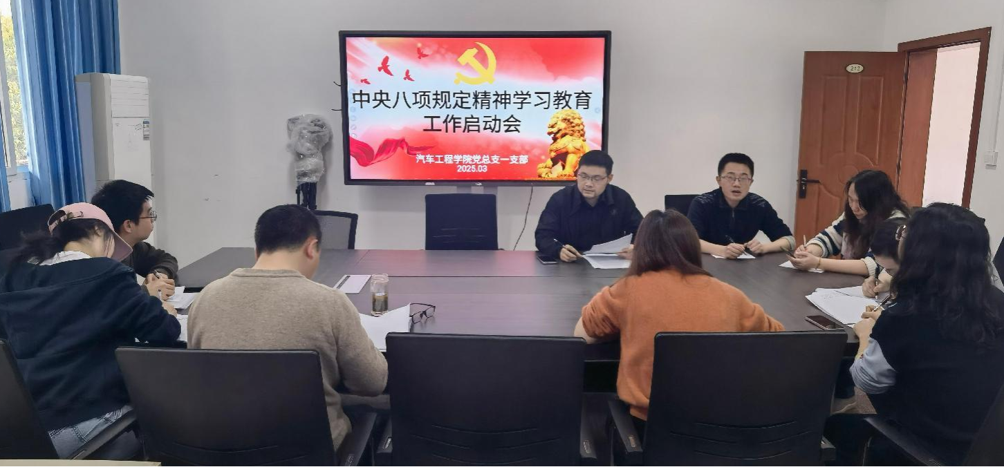 2025年3月27日,汽车工程学院第一党支部深入贯彻中央八项规定精神学习教育工作启动会在龙都校区知新办公楼2楼会议室进行,会议由宋刚主持,会议实到10人,1人请假。