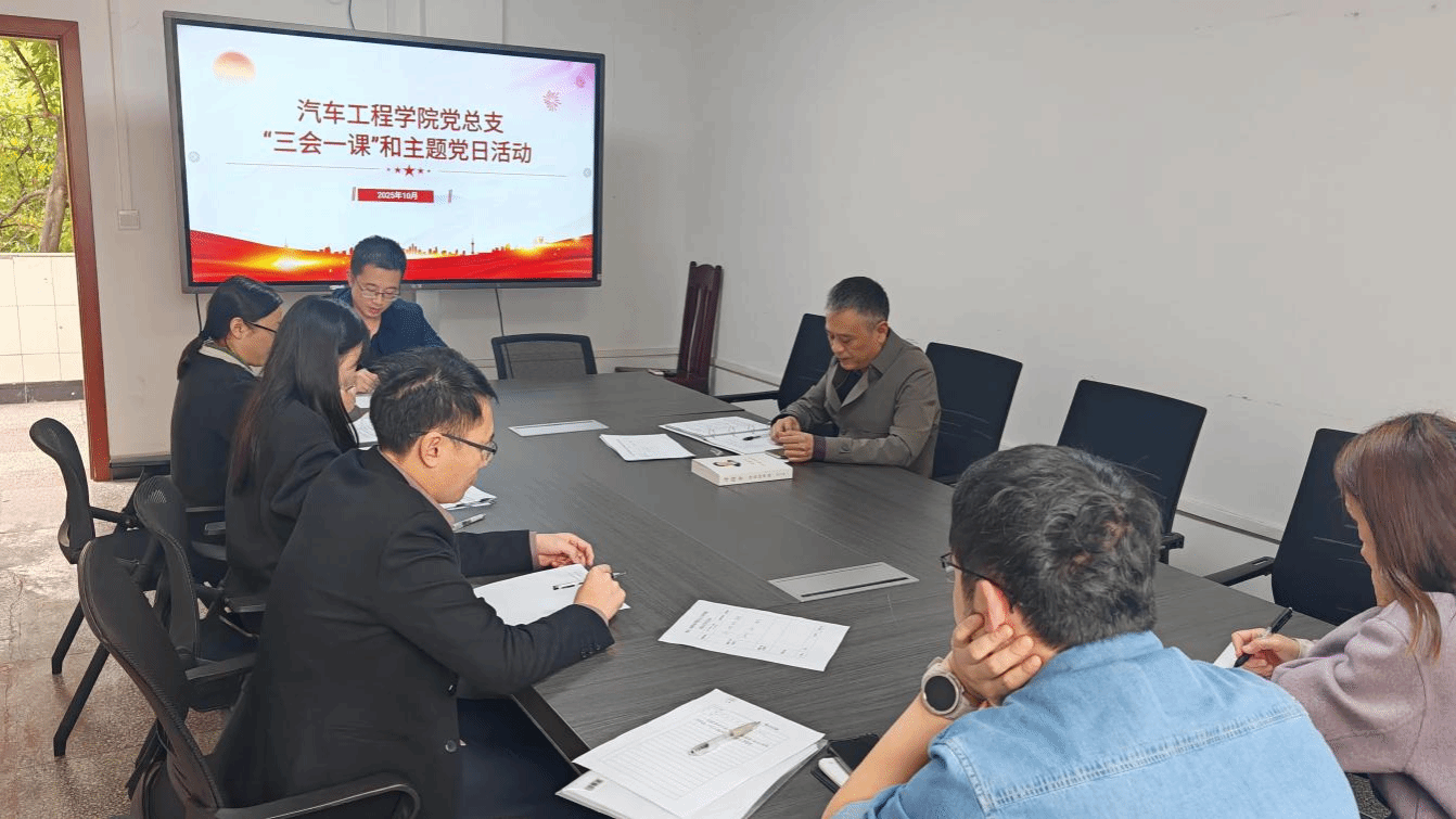 2025年10月31日,汽车工程学院党总支全体委员在龙都校区知新楼210会议室举行了2025年10月“三会一课”和主题党日活动。全体委员、支部书记、中层干部参加学习活动。