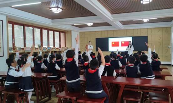 课堂上,宣讲团领学人以“妈妈、哥哥姐姐、弟弟妹妹”的比喻为小朋友们阐释了中国共产党与共青团、少先队的关系,并由此展开了一堂生动的思政课。领学人以生动的语言、活泼的教学风格为小朋友们讲述了党的光辉历程以及党的二十大精神,并号召他们要牢记习近平总书记嘱托,坚定理想信念,厚植爱国情怀,感党恩、听党话、跟党走,做有理想、敢担当、能吃苦、肯奋斗的新时代好少年。