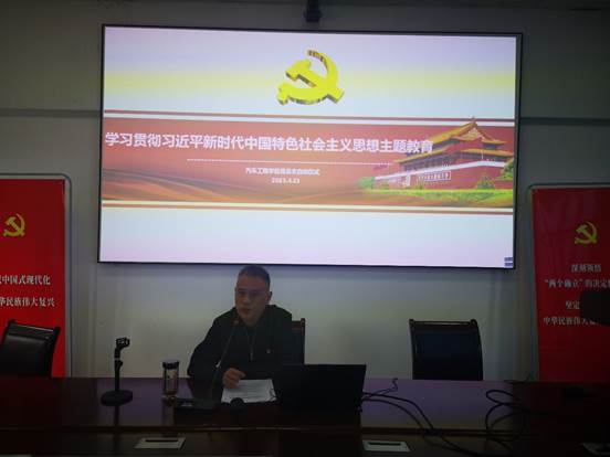 423日下午,汽车工程学院在沙龙校区汽车办公楼501会议室举行学习贯彻习近平新时代中国特色社会主义思想主题教育启动仪式,深入学习学院关于展开主题教育的部署要求,对全院深入开展主题教育工作进行动员和部署,启动仪式由汽车工程学院党总支书记、院长夏平主持,汽车工程学院全体教师参加了启动仪式。
