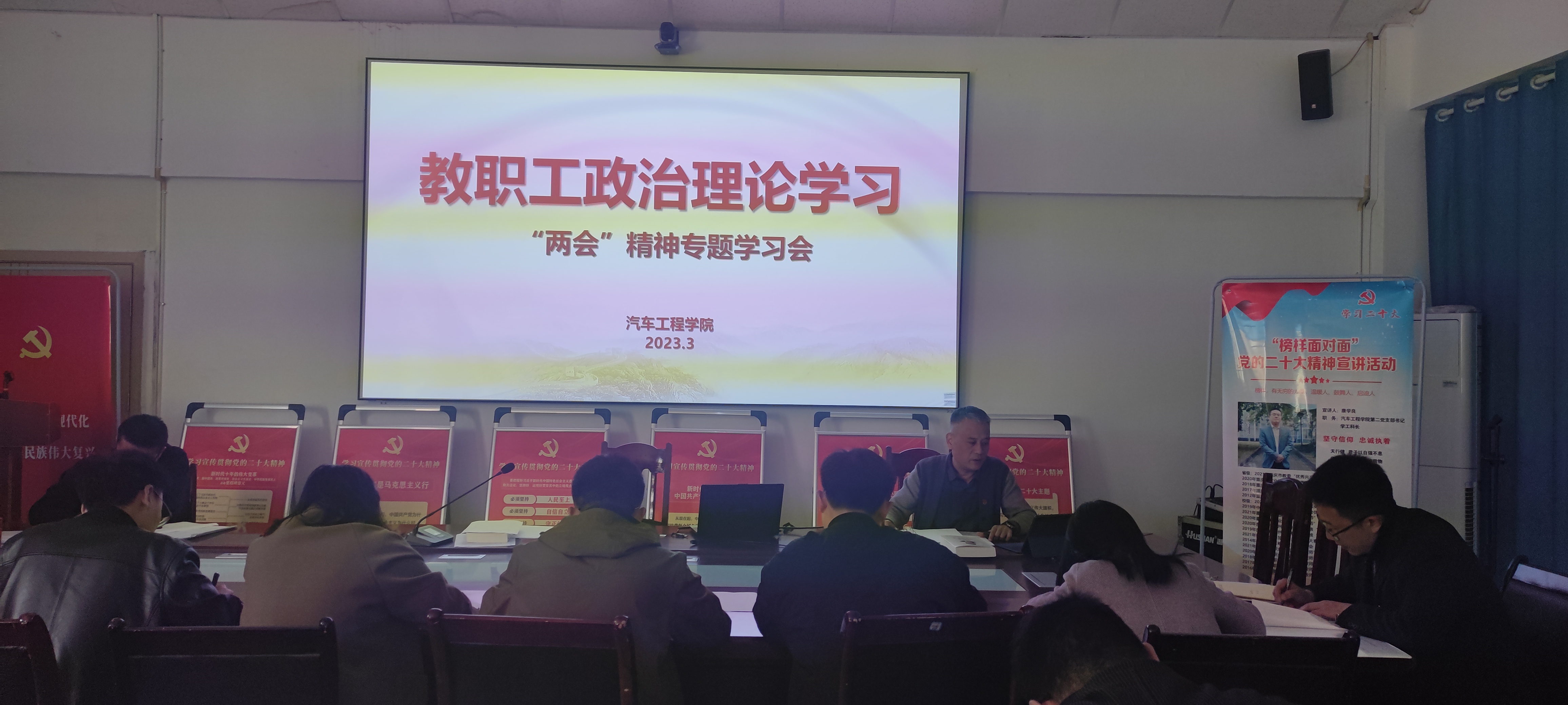 2023年3月21日,汽车工程学院全体教职工在汽车工程学院501会议室开展全国“两会”精神专题学习,会议由汽车工程学院党总支书记夏平主持。