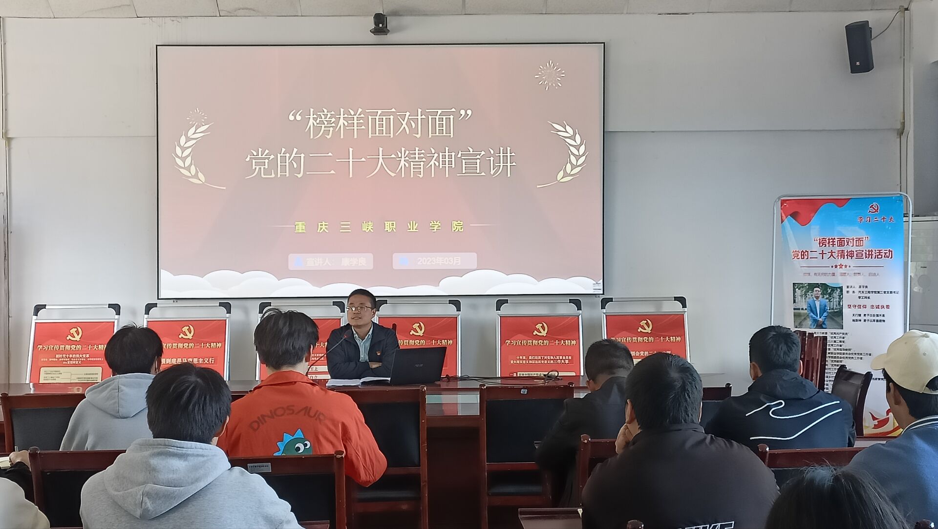 2023年3月20日,重庆三峡职业学院汽车工程学院党总支第二党支部书记、汽车工程学院学工科科长康学良老师在沙龙校区汽车工程学院楼501会议室进行“榜样面对面”党的二十大精神宣讲,汽车工程学院入党积极分子及各班团支书参加了本次宣讲。