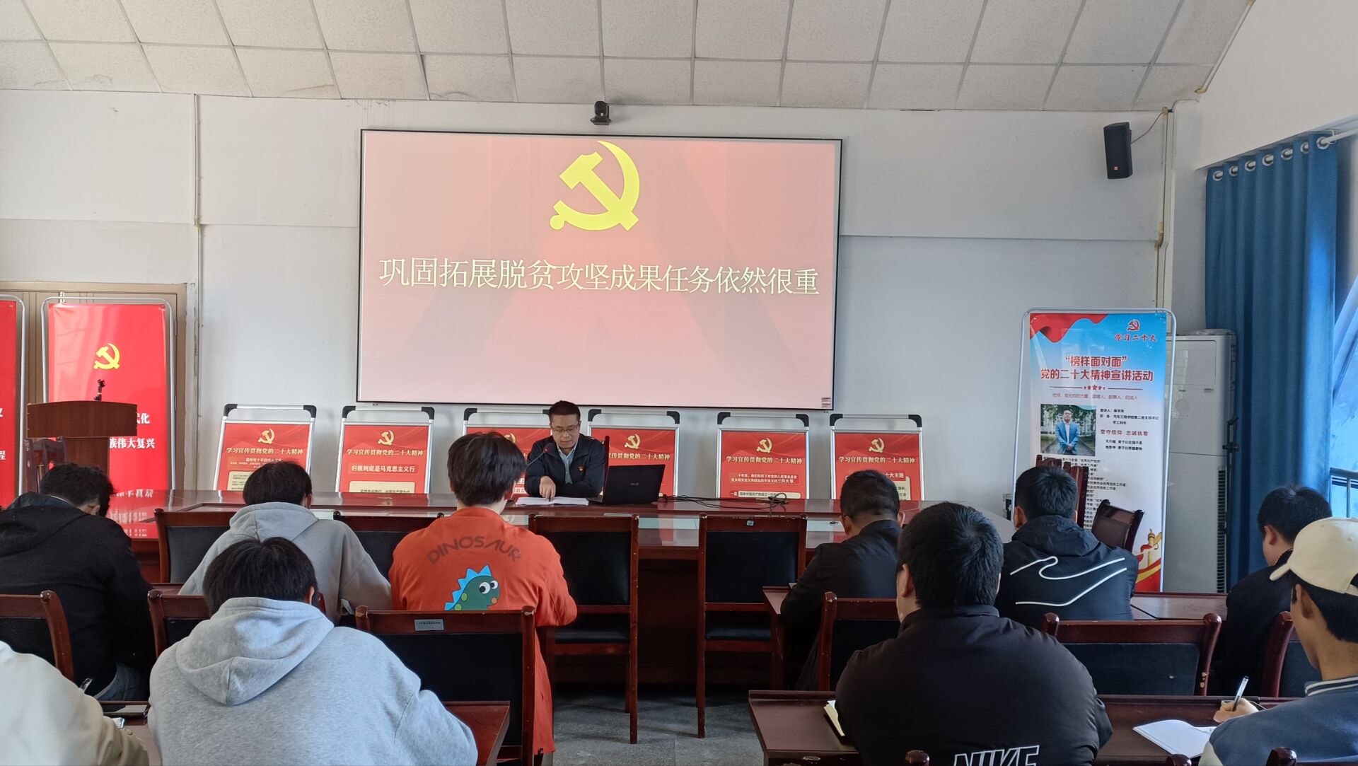 党的二十大是一次高举旗帜、凝聚力量、团结奋进的大会,取得了十分重要的政治成果、理论成果和实践成果,对全面建设社会主义现代化国家、全面推进中华民族伟大复兴具有重大现实意义和深远历史意义。康学良同志曾于2019年1月至2021年5月参加脱贫攻坚战,选派驻村到了重庆市万州区最偏远的山区村落——白土镇大林村,同驻村帮扶队伍的45名责任人实行“军令状”式责任制帮扶135户、436名贫困人口,攻克坚中之坚,解决难中之难。他用自己的亲身经历给同学们讲解了我党在完成脱贫攻坚、全面建成小康社会所取得的历史成就。听完康学良同志的宣讲,同学们深受感染,心中激起蓬勃的热情。