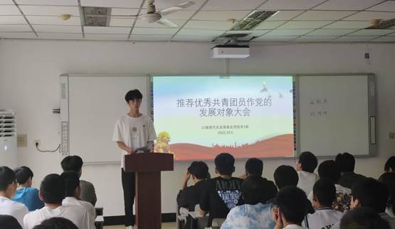 推荐优秀团员作为党的发展对象,是共青团发挥党的助手和后备军作用的具体体现,是加强共青团思想建设、组织建设的有效途径,是保持党的队伍青春、活力、巩固党的执政之基。为了规范团支部“推优”工作,同时让22级的学生干部能够迅速了解工作开展流程,汽车工程学院党总支于2022年10月6日中午在沙龙校区综合教学楼101举行了“推优”入党示范会。会议以汽车工程学院2021级农机班团支部作为示范班级。汽车工程学院党总支书记夏平、汽车工程学院第二党支部书记康学良、第二党支部支委成员、22级新班团支部书记和班长、新进辅导员老师参加了此次会议。