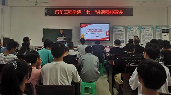 为了深入学习宣传习近平总书记在庆祝中国共产党成立100周年大会上的重要讲话精神,近期,汽车工程学院党总支按照学校“七一”重要讲话精神宣讲方案精心组织、周密部署,全覆盖、多形式的面向全体四师生开展了宣讲活动,在全院迅速掀起了学习热潮。