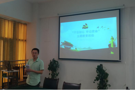 会上,党支部书记谢焕讲解“不忘初心、牢记使命”的含义和意义,传达了学校党委主题教育动员精神。