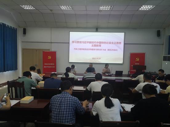 2023年6月27日,按照汽车工程学院党总支学习贯彻习近平新时代中国特色社会主义思想主题教育方案,汽车工程学院党总支召开学习贯彻习近平新时代中国特色社会主义思想主题教育全体教职工第五次集中学习研讨会。会议由汽车工程学院党总支书记夏平同志主持,全体教职员工参加学习会议。