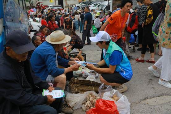 肺结核是一种慢性呼吸道传染病,极易发生传染且恢复周期长。为落实“百千万志愿者结核病防治知识传播活动提升行动”,扩大宣传力度。实践团成员们借着恒合土家族乡场镇赶集的时间来到集市展开了“防治结核,志愿有我”宣讲活动。成员们手持防治宣传单,在喧闹的街道上热情地向过往的少数民族群众普及肺结核防治知识,让大家更加了解结核病的防护与治疗知识。