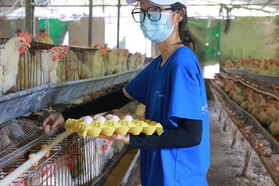 乡村振兴离不开产业振兴,实践团成员来到当地土家族养鸡大户周菊花的养殖场,进行了学习和交流。周菊花亲切地说:“感谢党对少数民族地区的关怀,原来她家还是出了名的贫困户,是国家给政策、给资金支持才让她家能把养鸡事业搞得这么红火”。聊着聊着就到了鸡群集中产蛋的时间,实践团成员们看着满满的产蛋栏,个个跃跃欲试,手持装蛋夹,忙碌地捡拾着鸡蛋,体验了一把养殖大户的“快乐”。实现乡村振兴,产业是关键,据了解周菊花一家三口经营的养鸡场,一年能给她家带来约50万元的收入。