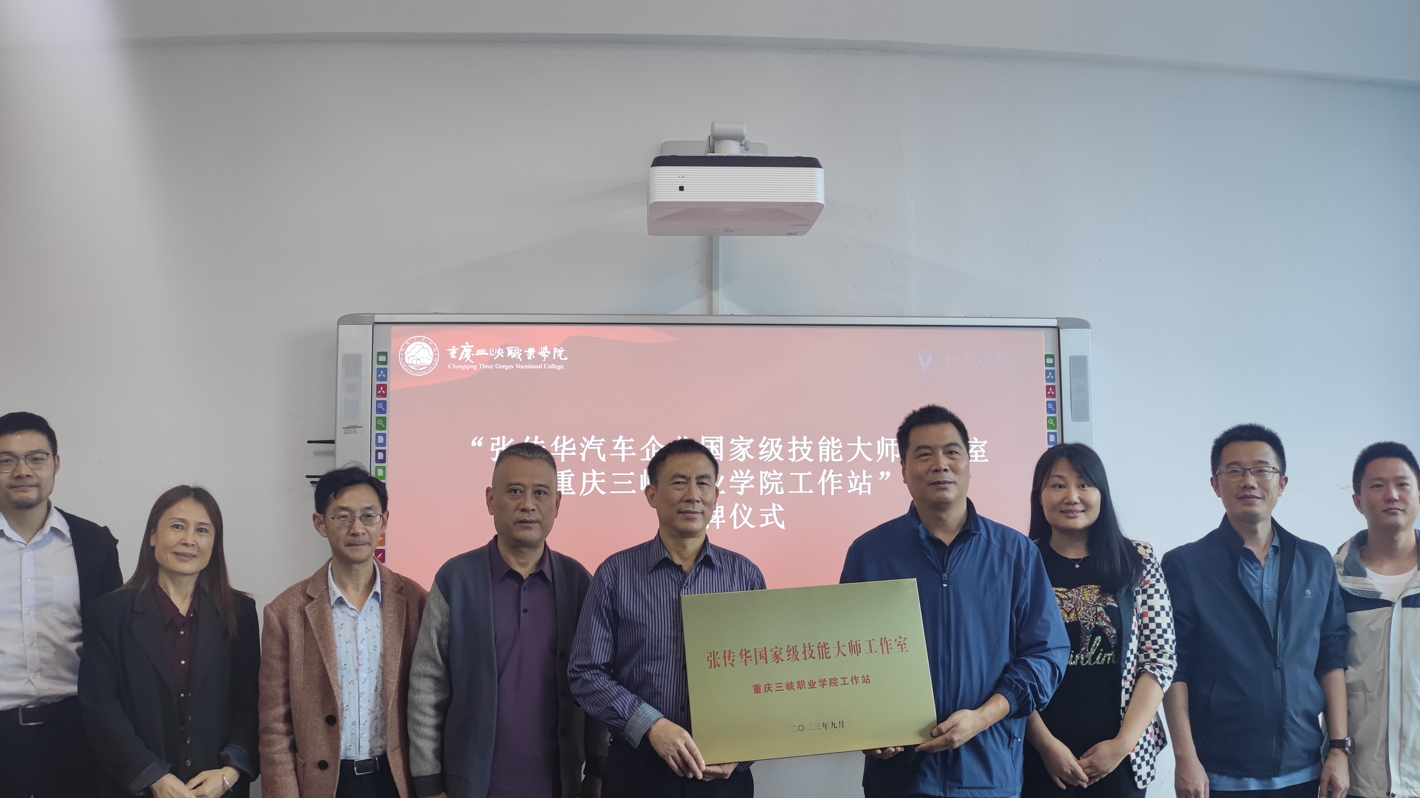 为强化技能大师引领,培养高技能技术人才,9月25日,“张传华国家级技能大师工作室重庆三峡职业学院工作站”揭牌仪式在沙龙校区汽车工程学院顺利举行。国务院津贴获得者、国家级技能大师张传华,全国技术能手、技能大师工作室成员田钭,长安产教融合项目推广办公室主任李燕,长安产教融合项目推广办公室项目主管孙凯,学院党委委员、副院长赵福奎,学院对外交流合作处处长谭军,汽车工程学院党总支书记、院长夏平,汽车工程学院党总支副书记沈枫、汽车工程学院副院长谢焕以及各教研室主任参加了揭牌仪式。