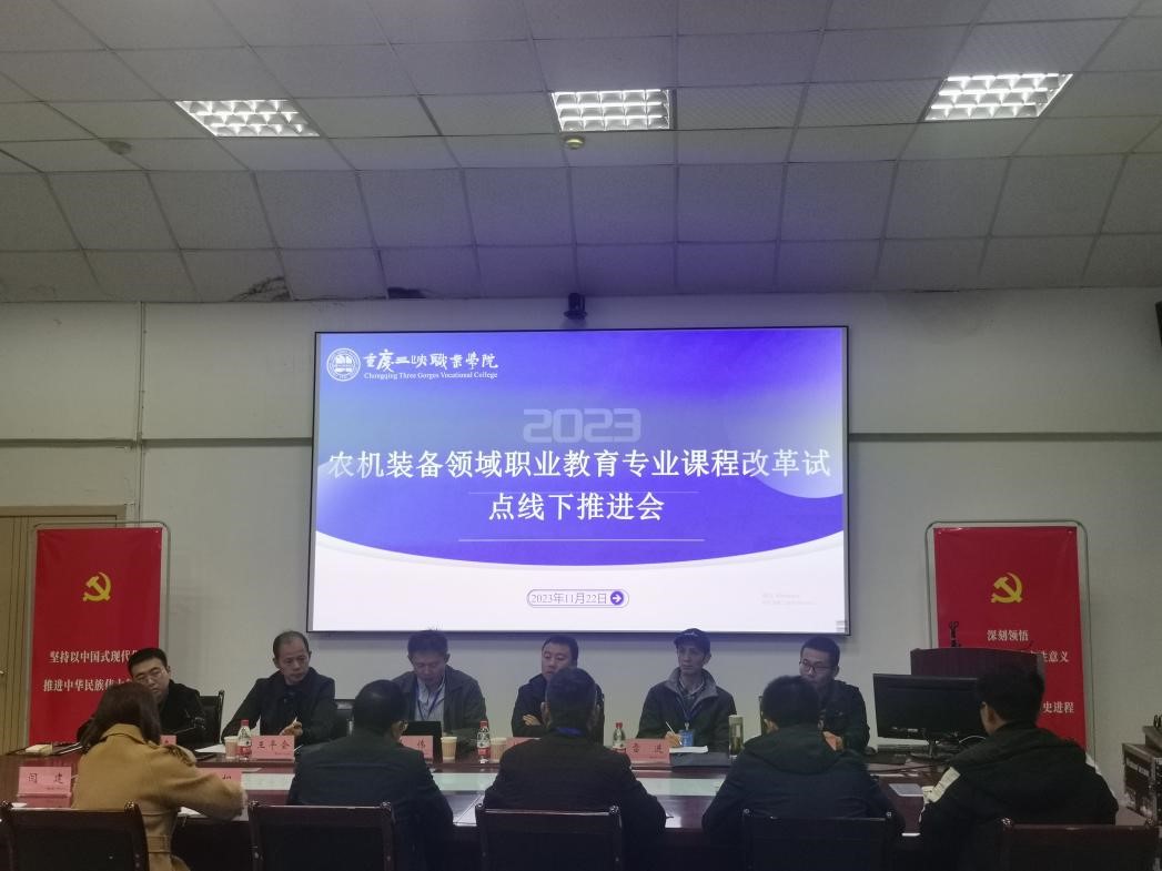 为加快推进农机装备领域课程及生产实训项目建设,确保试点工作高质高效推进,11月22日,农机装备领域课程及生产实训项目线下推进会在重庆三峡职业学院汽车工程学院顺利召开。会议特邀中国教育科学研究院职业与继续教育研究所副研究员聂伟博士,西南大学教育学教授林克松博士,江苏农林职业技术学院、辽宁农业职业技术学院、成都农业科技职业学院等现代农机装备操作保养方向课程参建院校代表参会指导。学校副校长袁德梽、课程改革实施团队、企业代表参会。