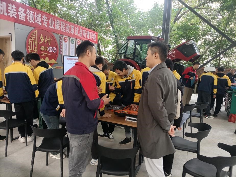 为加快推进农机装备领域课程及生产实训项目建设,落实改革试点项目推进会精神,11月22日至23日,汽车工程学院举办了现代农业装备应用技术专业(创新型拔尖技术人才)听课、评教活动。活动特邀中国教育科学研究院职业与继续教育研究所副研究员聂伟博士,西南大学教育学教授林克松博士,江苏农林职业技术学院、辽宁农业职业技术学院、成都农业科技职业学院等现代农机装备操作保养方向课程参建院校代表线下参与指导,本次活动面向全国直播,试点参与院校的数十名教师同步线上参与。