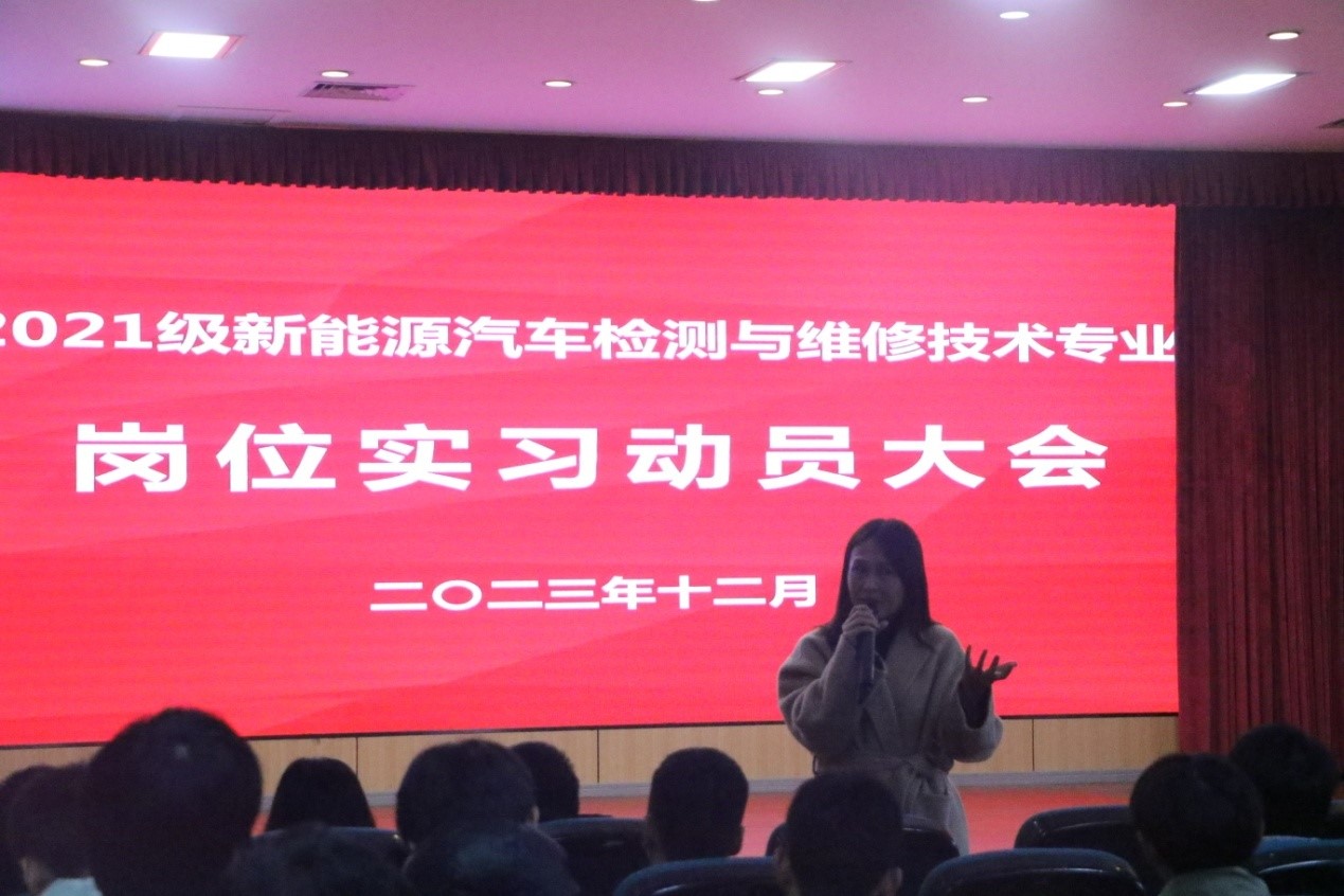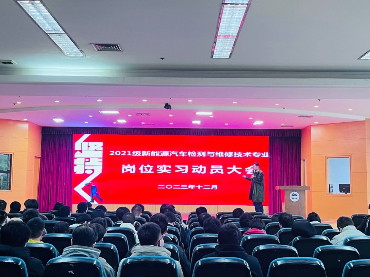 2023年12月1日,2021级新能源汽车检测与维修技术专业学生岗位实习动员大会在重庆三峡职业学院(沙龙校区)综合楼学术报告厅顺利召开,汽车工程学院党总支副书记沈枫教授发表讲话,汽车工程学院就业干事魏巍老师,新能源汽车专业宋刚、谭瑷军、李小令等老师及21级新能源汽车专业辅导员孙小伟老师参加了本次动员大会。