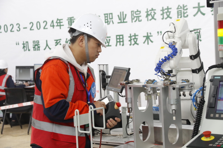 12月27日-12月29日,2023-2024年重庆市职业院校技能大赛“机器人系统集成应用技术”赛项在重庆三峡职业学院沙龙校区举行,本次比赛分为学生赛和教师赛两项,其中学生赛共有来自重庆市内包括重庆工业职业技术学院、重庆城市职业学院在内的16所高职院校,共计29支队伍参加,教师赛共有7所院校,共计7只队伍参加。